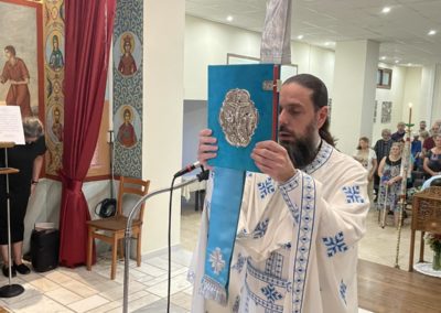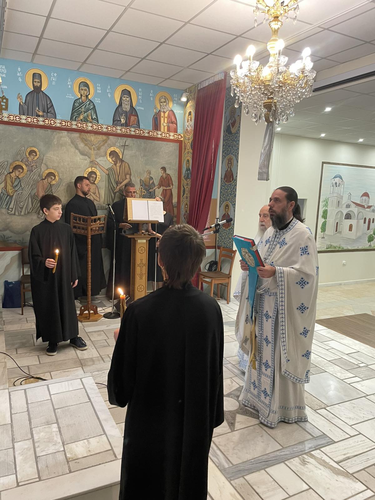 Το ἀπόγευμα τῆς 12ης Ἰουλίου τελέσθηκε ὁ Ἑσπερινὸς καί ἡἹερὰ Παράκληση πρὸς τὸν Ὅσιο Παΐσιο καὶ τὸ Ἱερὸ Μυστήριο τοῦ Εὐχελαίου ἐπὶ τοῦ Τιμίου Ξύλου.