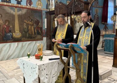 Ἀνήμερα τῆς ἑορτῆς τοῦ Ὁσίου τελέστηκε ὁ Ὄρθρος καὶ ἡ Πανηγυρικὴ Θεία Λειτουργία ὑπὸ τῶν Αἰδεσιμ. ἱερέων Θεολόγου Ἀποστόλου καὶ Σωτηρίου Ἀλεβιζάκη.